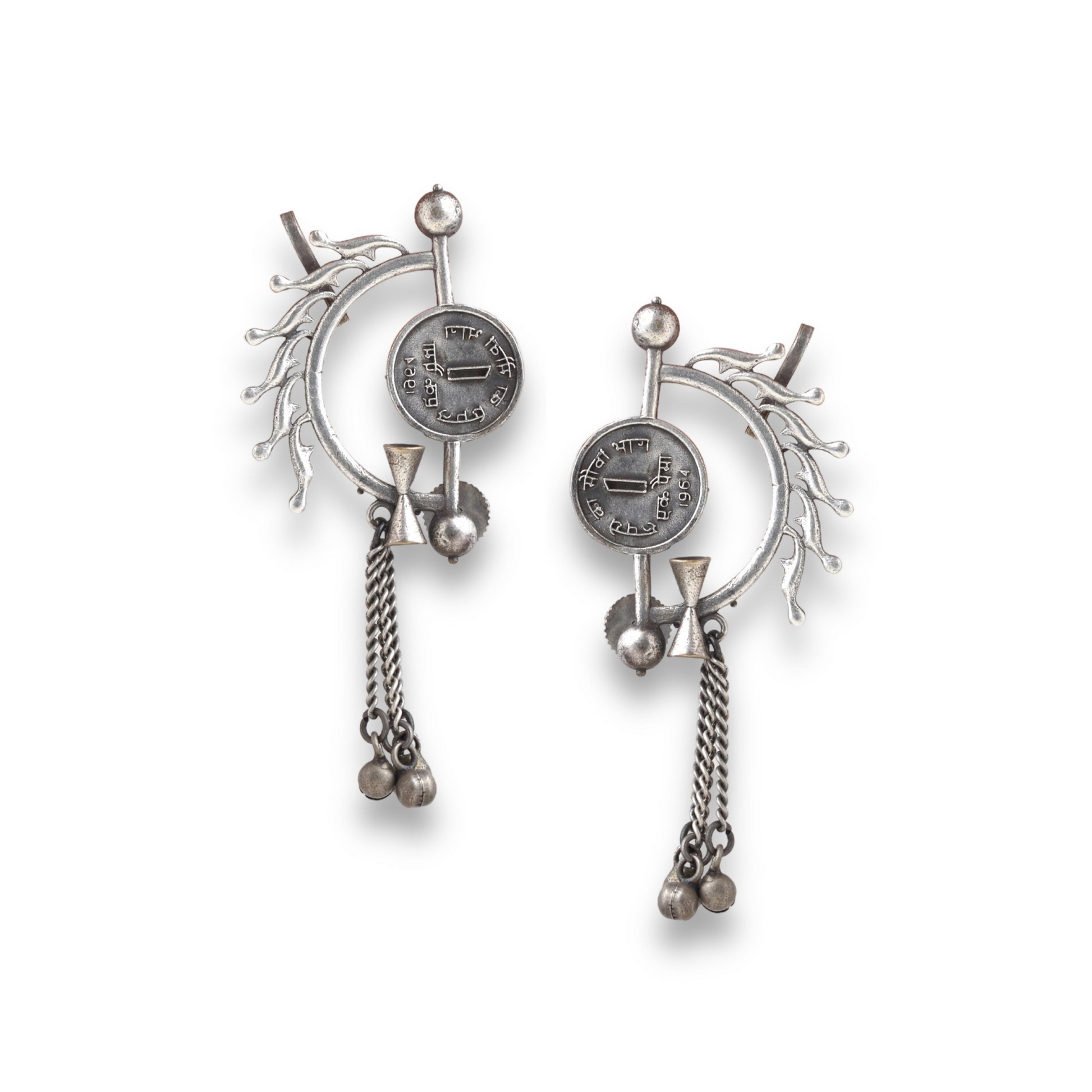 Coin Shape Unique Ear Cuff Earrings : Oxidized Silver Earrings