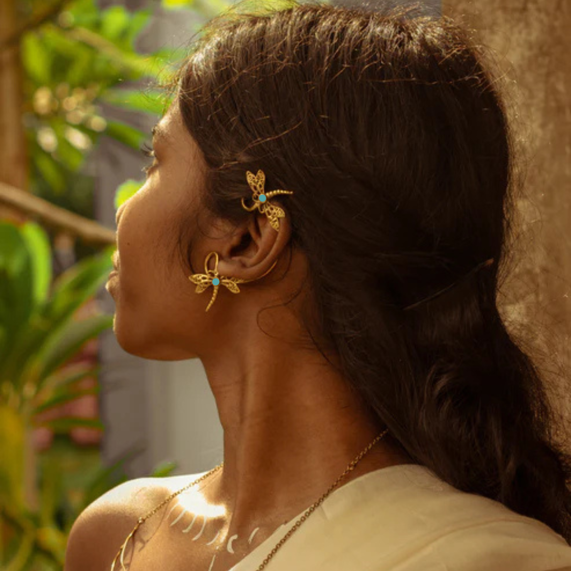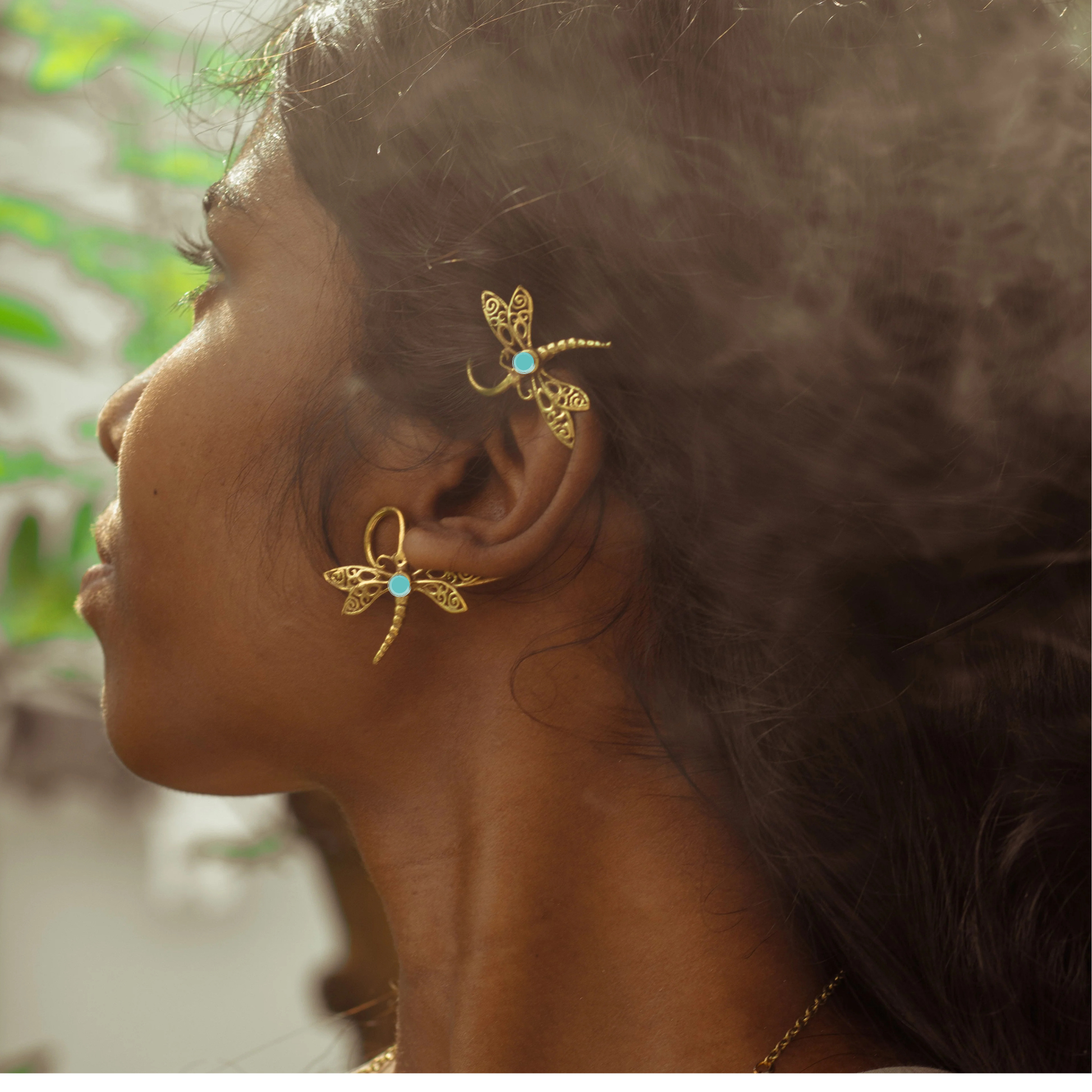 Dragonfly Boho Ear Cuff, Dragonfly Brass Ear Cuff
