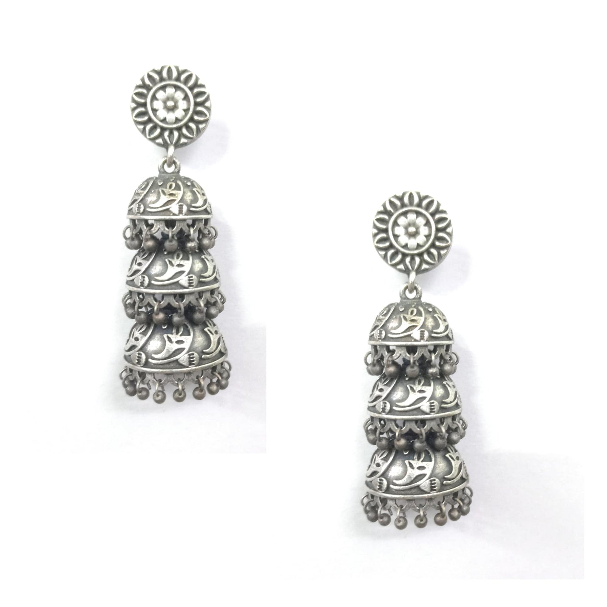 Dulcett Oxidised Jhumka Earrings : Ethnic Style Layered Jhumka