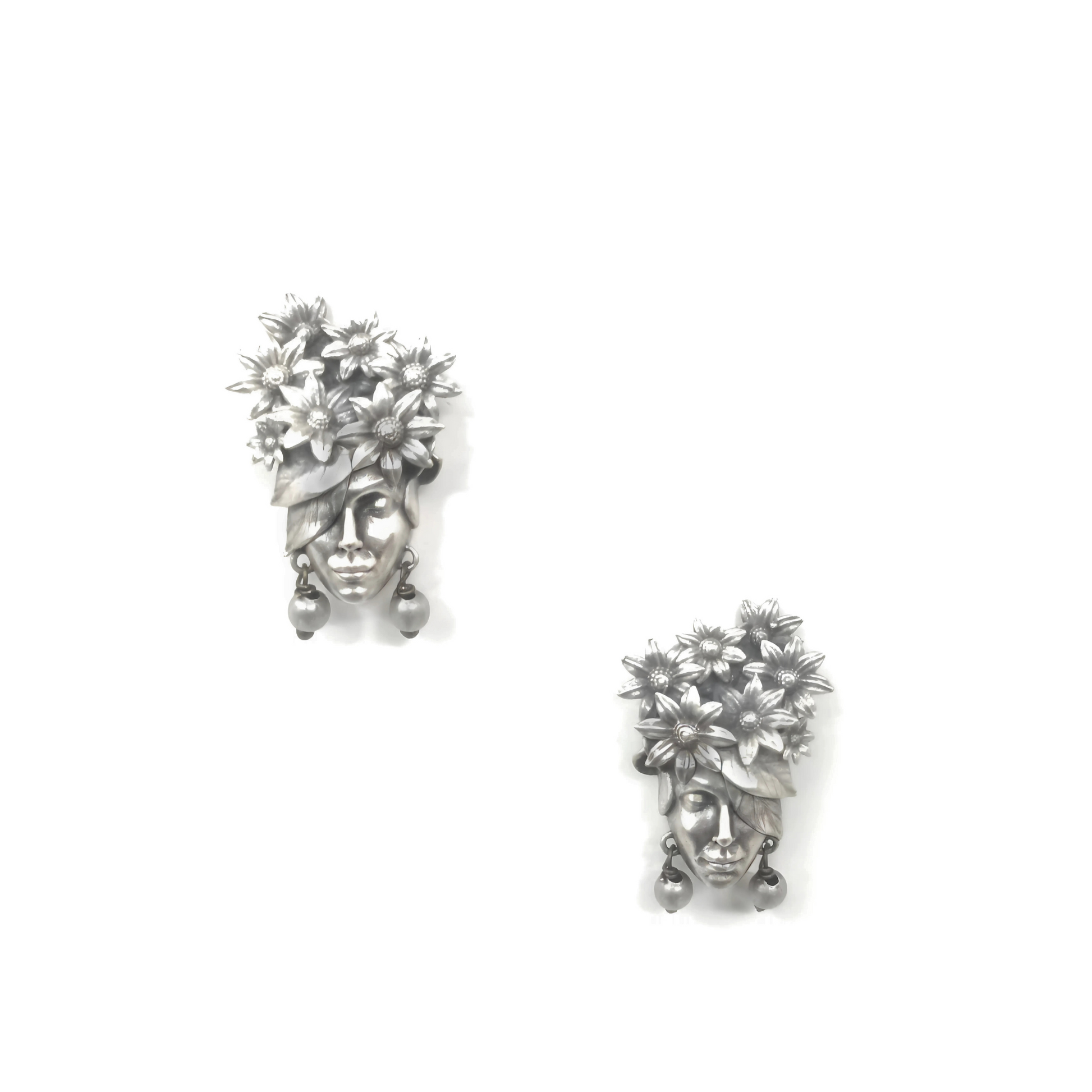 Dulcett Oxidised Silver Face Earrings – Handcrafted Nature-Inspired Design