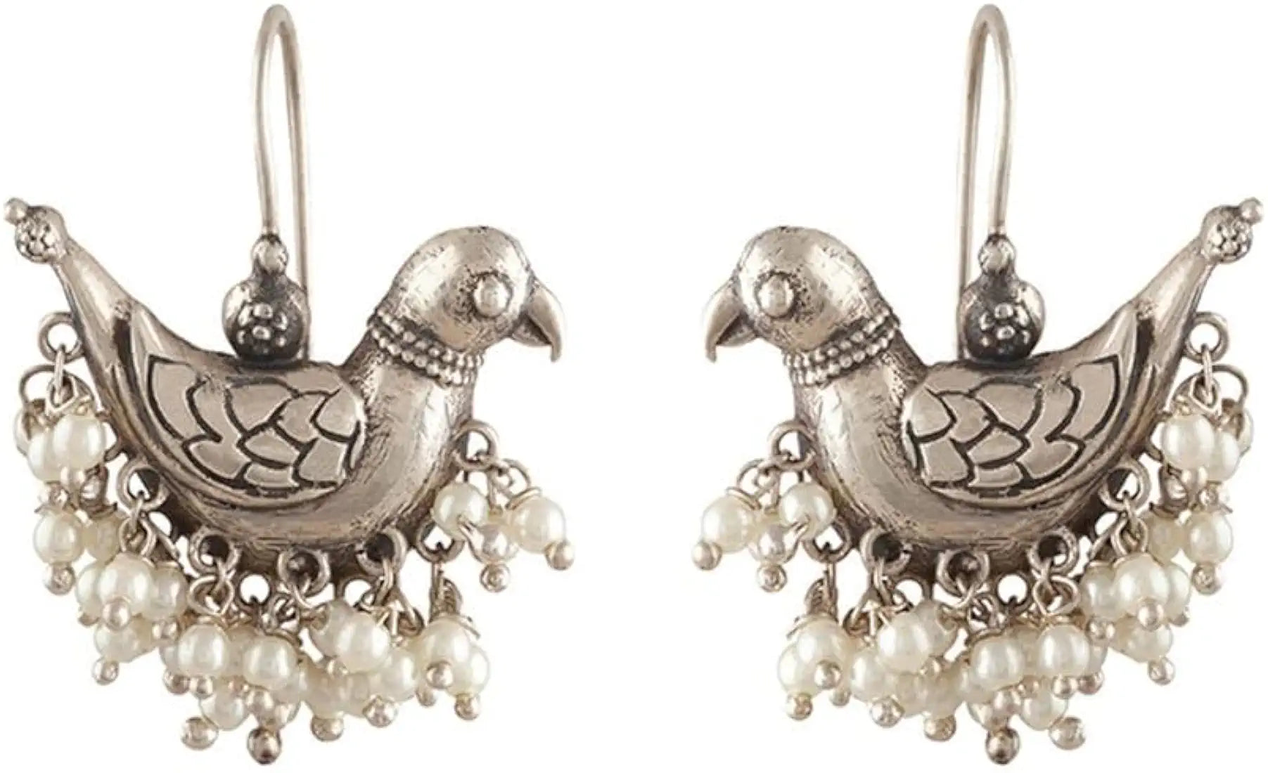 Oxidized Bird Earrings with Pearls