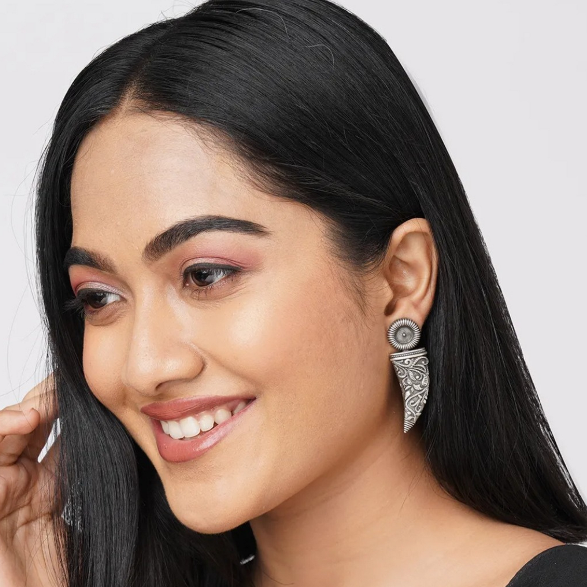 Oxidized Drop Stud Earrings - Sword Shape, Bold & Unique Jewelry