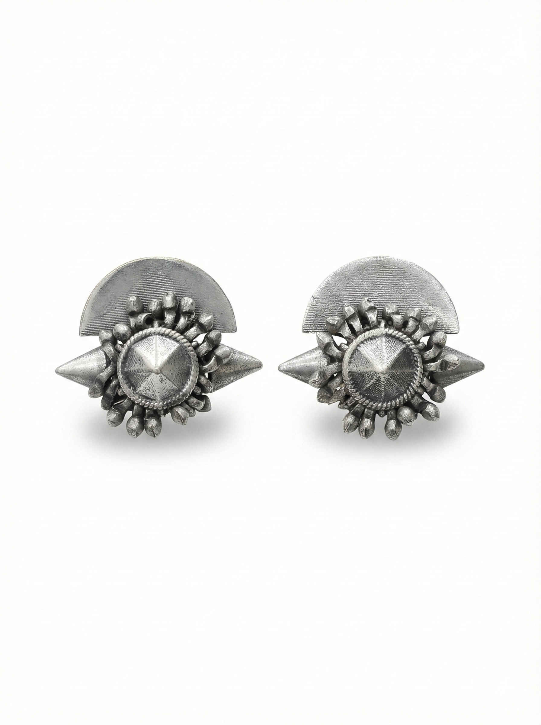 This exquisite upper-ear ornament features a bold, oxidized finish with intricate granular detailing and a striking sun-ray motif. Traditionally worn by Maharashtrian women as a symbol of grace, this contemporary clip-on version allows you to sport the look instantly.